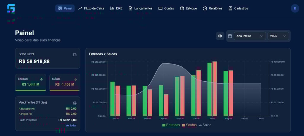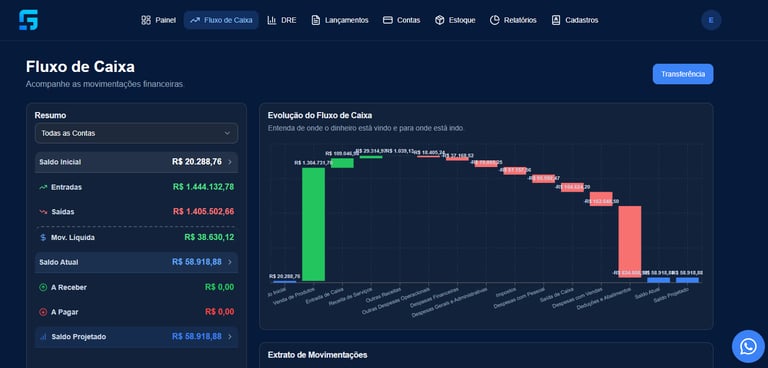 Fluxo de caixa inteligente e integrado para não deixar nada passar.