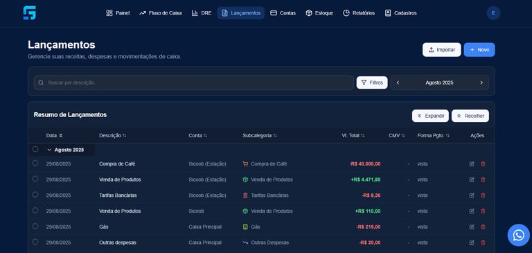 Lançamentos centralizados para facilitar a sua vida.